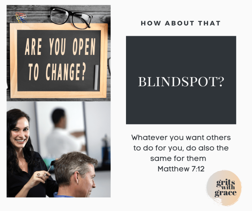 Well, that started the wheels turning in my mind. I wondered just how many other things are there about me that I am totally blind to? How many times did my impatience at the grocery store show? How many times did my glaring eyes betray my true feeling when some nice “little, old lady” pulled out in traffic in front of me? How many times was my sarcasm not as veiled as I thought? Oh my!
