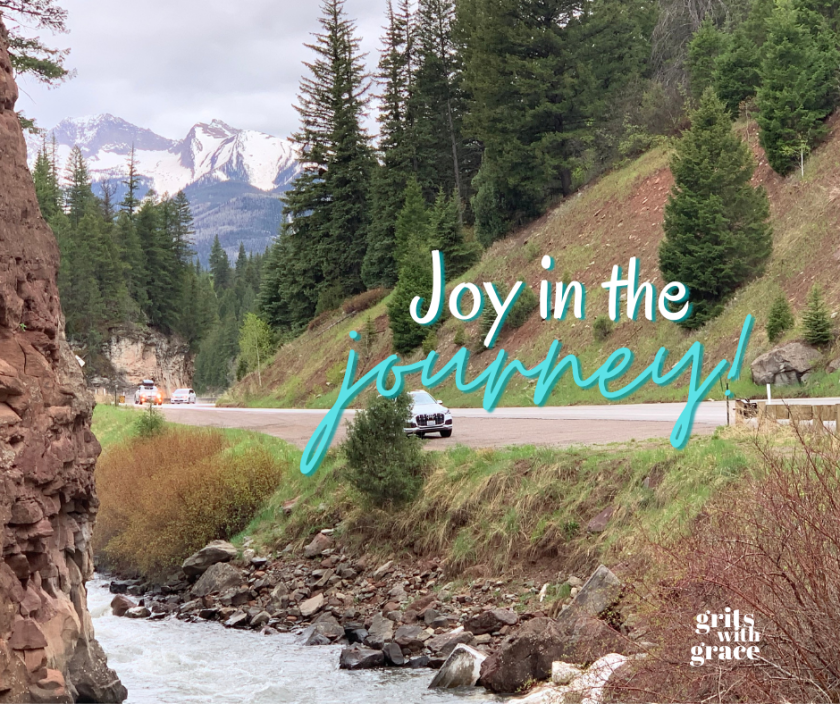 You see, if I am racing to the destination, then put me on an interstate highway where the roads are wide, and the speed limit is high. Out in Wyoming, the speed limit on the interstate was 80 mph…Katie bar the door. Oh, and those long, straight two-lane roads—yup, 75 mph. That fit my destination minded mindset just fine, thank you. But then there were the times that we were in the Rocky Mountains on a curvy, mountain road just driving. There really wasn’t a place we had to be—we were just driving and that changed everything. If there was a slower driver in front…that was fine. We would just sit back and enjoy the scenery as it slid by the windows. The journey was the destination and joy was the result.