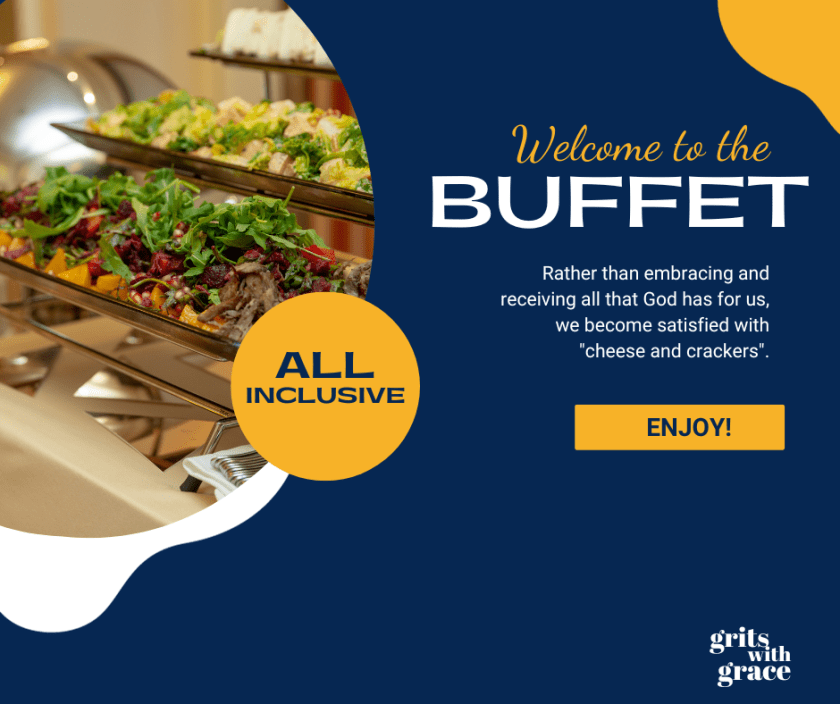 Sadly, many Christians live their life the way this man did on the cruise ship. Rather than embracing and receiving all that God has for them they become satisfied with “cheese and crackers,” living off the scarcity of the world when they could be dining on steak and baked potatoes. Either out of stubbornness or just a lack of knowledge, they don’t allow the Holy Spirit to take control of their lives and produce the luscious fruit of the Spirit–love, joy, peace, patience, kindness, goodness, faithfulness, gentleness, and self-control. They chose spiritual poverty over abundant life and scarcity over the joy of enjoying the abundance of their Dearest Daddy.