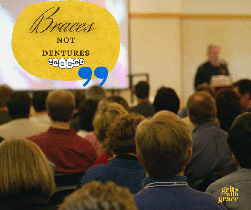 Right before I end the list, I always throw the kids in. They will all be handsome and attractive, be superstar athletes and never, ever need braces. Well, that is what I meant to say but instead of saying braces, I said dentures. So flying out of mouth came, “And your kids will never need dentures.” Ok, I know and you know that dentures is not even close to braces so where it came from? Who knows? But it took about one second for the crowd to catch it and have a good laugh. Of course I corrected it right away and even added a bit to add to the unexpected humor. We all had a good laugh, and I can only imagine the next time braces or dentures come up in a conversation, someone just might say, “I remember when…”