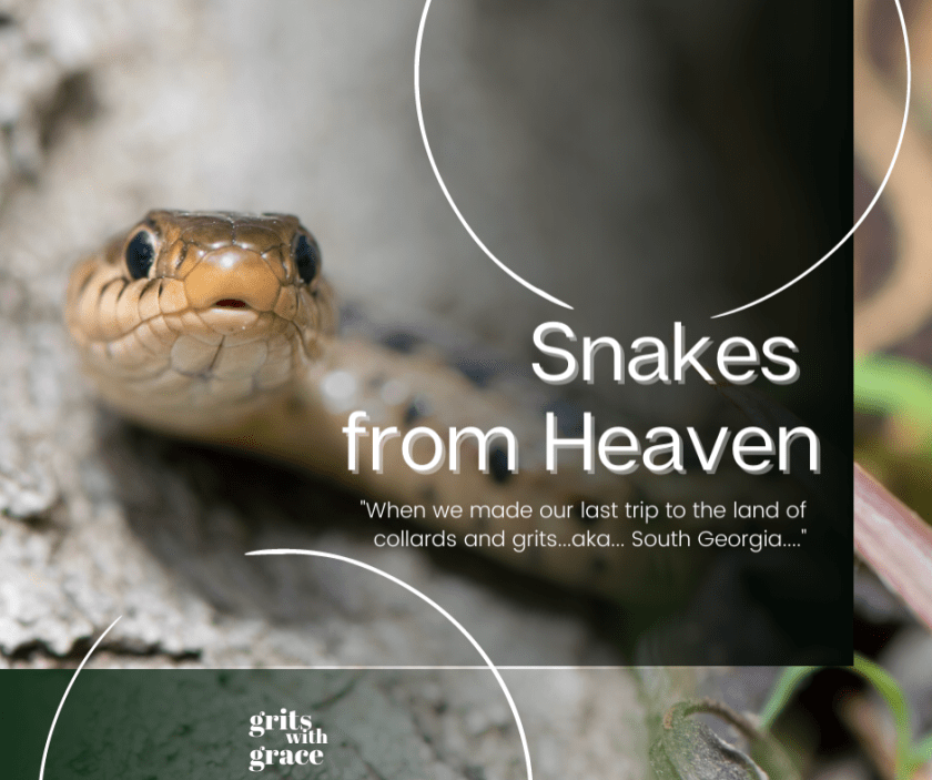 Marie, who is 100% South Georgia born and raised, went and got a hoe and well, let’s just say Mr. Snake went to meet his maker. If you like snakes, sorry. But if you are like me and firmly believe that the only good snake is one that is not breathing…well, you understand. So, what is the moral of this short story? What is the big truth? Well, I’m pretty sure for me it involves not being surprised at what can plop down right in front of you when you least expect it. Things can change quickly. The really, really big lesson is about gratitude. You see, if Mr. Snake had waited just about five more seconds to plop…he would have plopped right on my head, fallen into my shirt and I would have died of a heart attack.