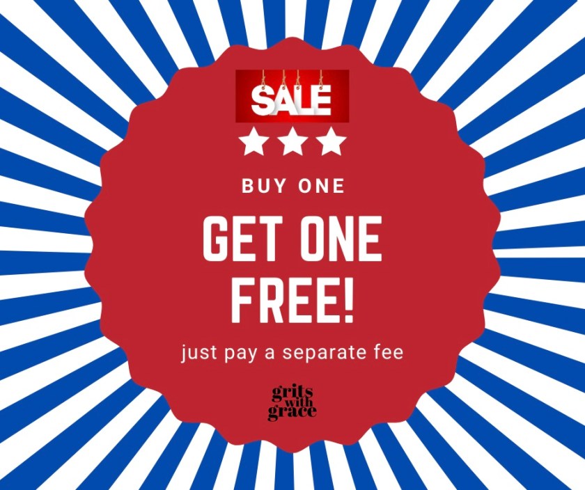 My favorites are the ones that offer you two instead of one. That’s right folks because we like you so much, we are going to send you two of these amazing products—just let us know—and, of course, pay a separate fee. Wait. What?  If I am paying a separate fee isn’t that like walking into a donut shop and asking for two donuts and paying for both?  Or maybe going into Best Buy and them saying we are not going to sell you one television today but two. All you have to do is pay a separate fee. That is called two for the price of two.