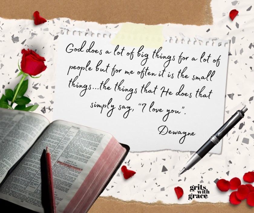 So, you probably know this, but today’s big truth is twofold.  First, yes, God loves you.  If you can’t yet call Him Father, He would love to fix that.  Talk to someone or Google it. Second, make every day a good day to look for His love notes. They are all around…we just need to learn to recognize them.  Rather than assuming something is a coincidence or accident…just look through the lens of God’s love and you will see them all around.