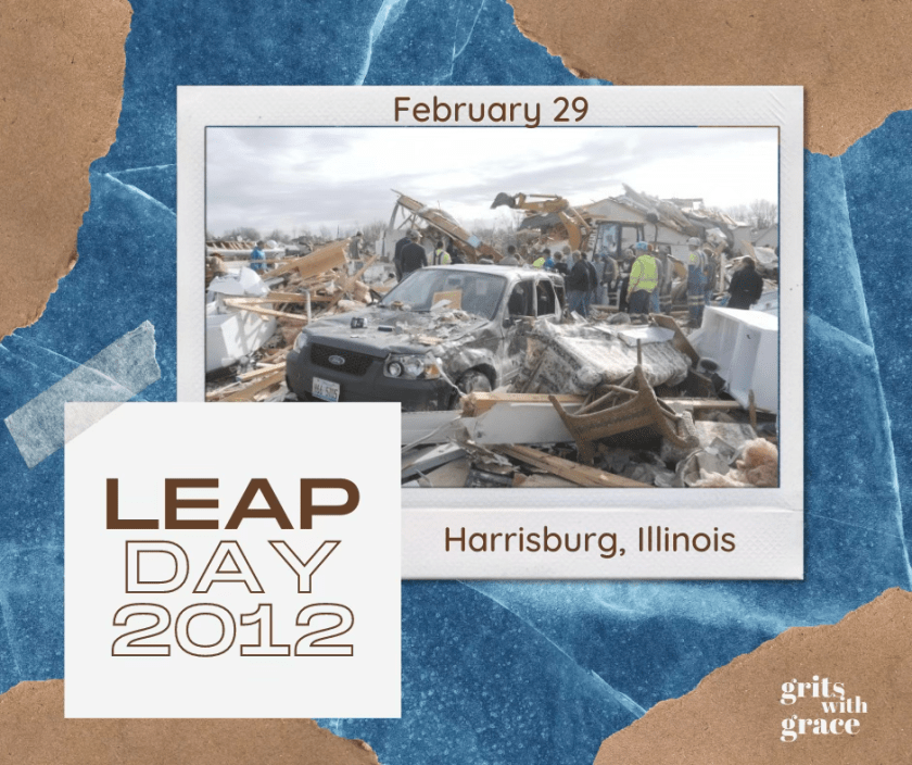 For the folks who live in the small Southern Illinois town of Harrisburg those numbers speak loudly and mournfully. The year was 2012 and it was a leap year with February having twenty-nine days…or letting the numbers talk it was 2.29.  The National Weather Service had forecasted potentially dangerous weather, and some had taken the warning seriously.  Others, softened by previous warnings, assumed it would be another false alarm.  At 4:56 in the morning, or 4.5.6, a line of damaging storms tore through the Southwest side of Harrisburg and in that tangle of lightening, thunder, wind, and rain raged an F-4 tornado.  For miles and miles, it tore through the countryside and several small towns…one of which was Harrisburg.
