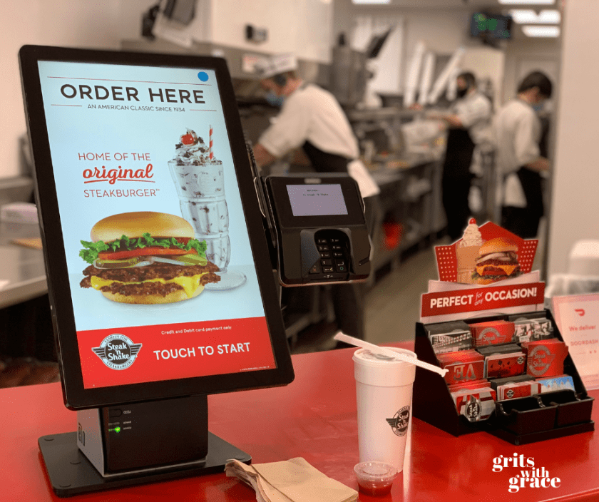 Now at almost every location, when you walk in, there is not a hostess to seat you and no counter to order at.  Instead, there are several kiosks (computer touch-screens) and from there you can order your food.  Then…you just sit down…wherever you want.  Feel free to go up and get your drinks from the drink station and finally someone would bellow out your order number and you would walk up and get your food.  Boom—just like that burgers and fries were flying into hungry mouths washed down by delicious milkshakes.  It was new, it was different and I loved it.