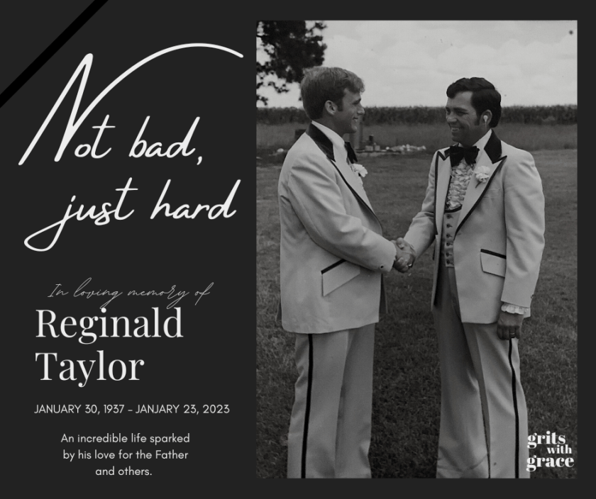 Short stories with big truths. It all started on a Saturday morning. We were a few months into writing stories on Facebook, and then decided to take the next step and build a website where our stories could be more easily accessed. Many of our friends suggested compiling the stories into a book. Well, that dream hasn’t happened and may not. But the website did. We decided to call it Grits with Grace. Grits spoke of our Southern heritage and grace of the most powerful thing we have ever experienced. Next came the tag line, “Short Stories with Big Truths.” Judy staged the picture in our backyard and, well, you probably know the rest.