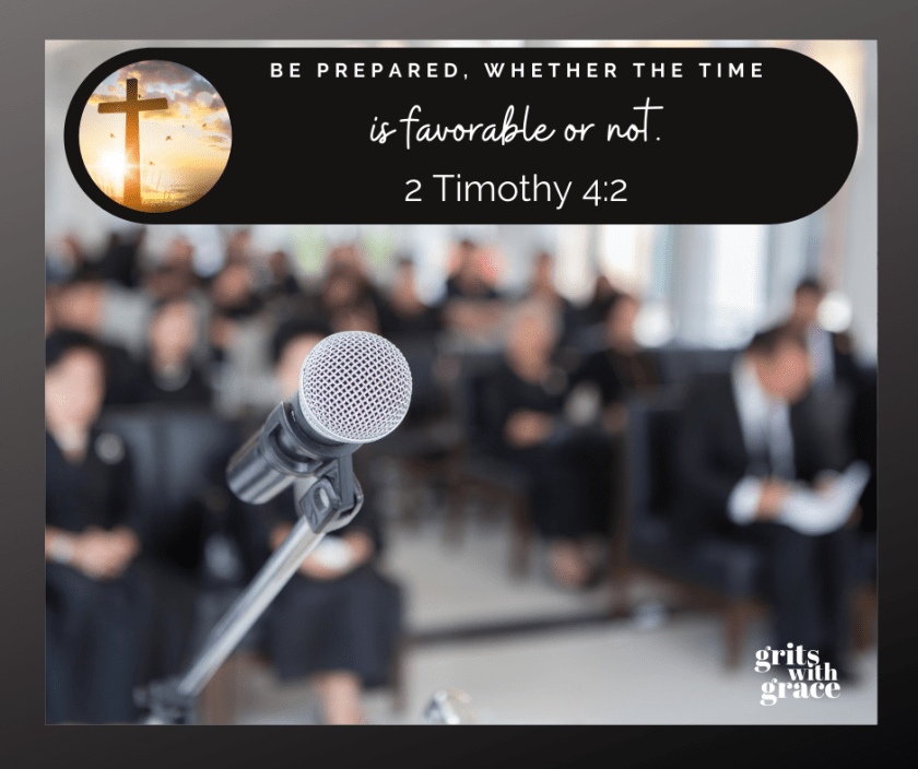 Be prepared, whether the time is favorable or not.” 2 Timothy 4:2
