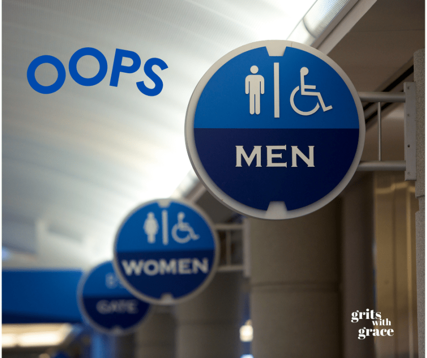 No one else was in the restroom and in just a minute I was ready to leave. When I opened the door, a lady from our team was just about to push the door open. I looked at her and she looked at me…something wasn’t right. My first thought was that she obviously was confused and was going into the wrong restroom. But then I had a thought. It was odd that the restroom didn’t have the usual equipment you find in a men’s restroom. And then it hit me. Oh no!