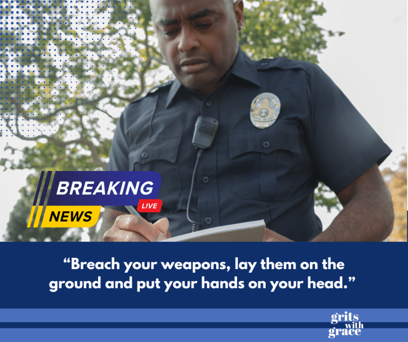 It was that static noise when someone mashes the button on a public address system before beginning to speak. It was then that we heard those fifteen words—which I still remember to this day even though it was 48 years ago, “Breach your weapons, lay them on the ground and put your hands on your head.” Ok, two things almost happened at that moment. I almost died and I almost lost bladder control. I was scared to death. I had only been pulled over by the police once and I had never been arrested. I was certain that the Air Force would not like the fact that one of their ambassadors was arrested…especially on weapons charges.