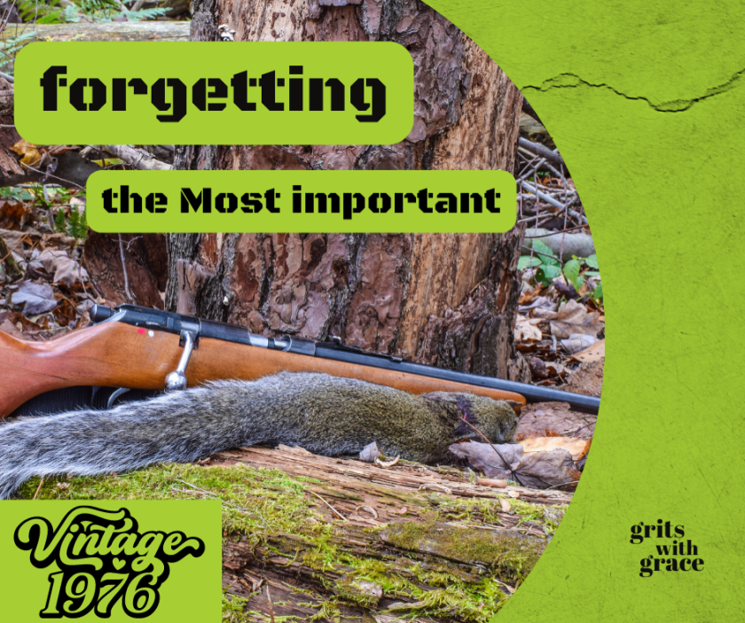 I was so embarrassed.  My brother was one of those African safari kind of hunters.  He had his hunting vest, his gun, weapon or firearm, a knife and on and on.  He looked the part and there I stood with no gun, weapon, or firearm.  I didn’t even have a knife.  So, I told him apparently in the rush to be on time I had left the most important thing behind.  We groaned, we moaned and then we laughed.  After all, it was funny.  So, with two hunters and one gun, weapon or firearm, off we went into the woods.  And all morning, I followed quietly behind my brother as he shot squirrels and I watched.
