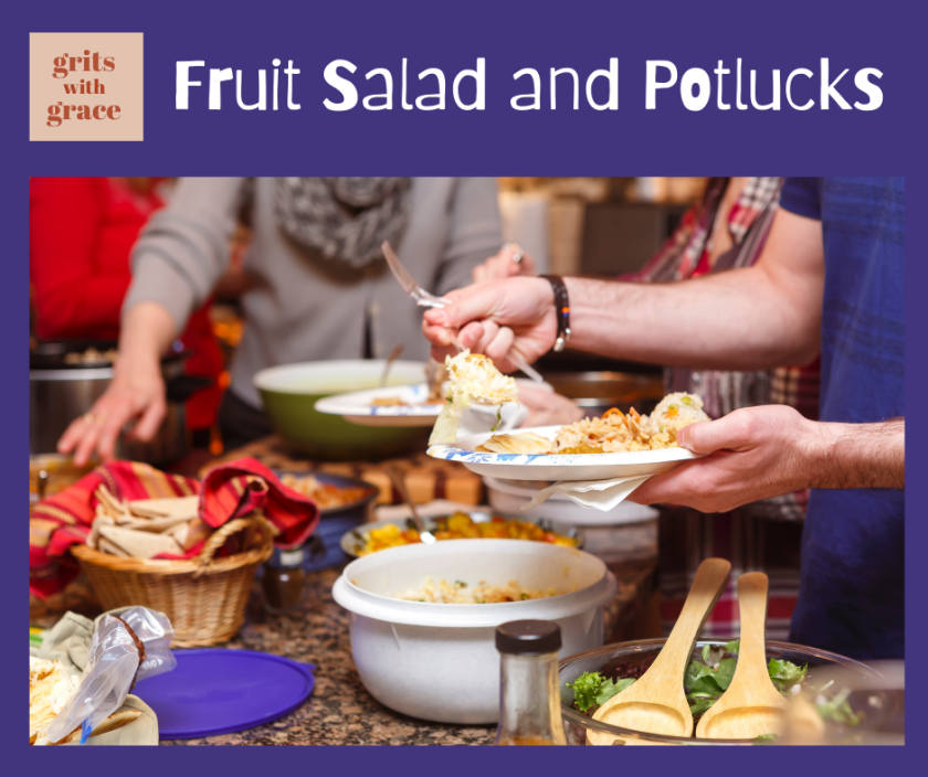 What is a potluck? Well, it is when all the folks at any given church put some food in a pot, brings it to church and shares it. And, with any luck at all, you end up with a really great meal.  When I was growing up we also used to call it, “dinner on the grounds.” That usually happened for a special occasion such as homecoming. In the South, the weather was usually pretty warm. At the church I was raised at, we had a long outdoor table covered by a tin roof. When the appointed day and time came, we would go outside, put on the food on that long table, pray, and then feast. I really never thought of it before but I guess I am grateful that we really didn’t have dinner “on the ground.”  Once again, some of my favorite memories is of sharing food at church. Call it potluck or call it dinner on the grounds—it was always good.